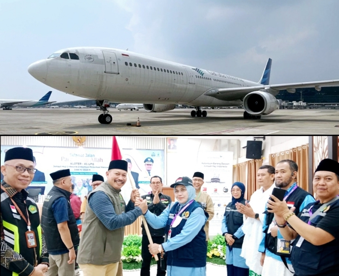 MAKASSAR – Jemaah haji (JH) kloter 41 embarkasi Makassar bertolak ke Bandar Udara Internasional Soekarno Hatta Cengkareng pada pukul 09.30 WITA dengan pesawat carter milik maskapai Garuda Indonesia,